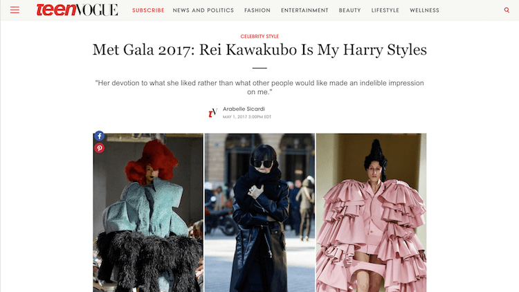 The Teen Vogue article I mentioned at the start is this great piece by Arabelle Sicardi in which she talks about how her first fandom was fashion. While I talk about One Direction fans teaching themselves technology skills, Arabelle talks about how loving Kawakubo made her learn more about pattern making and fashion design techniques so she could more fully comprehend why what she did was so radical.