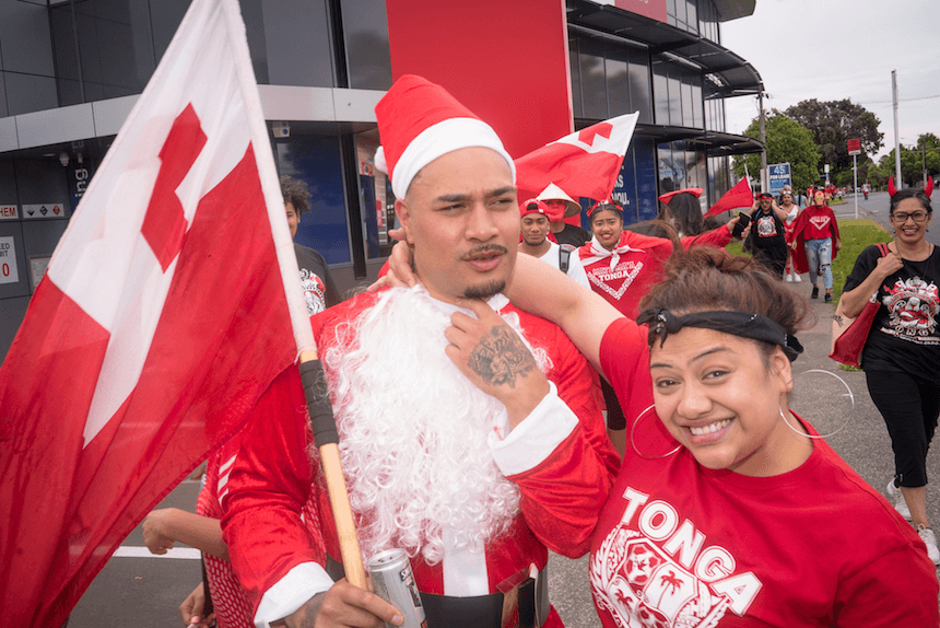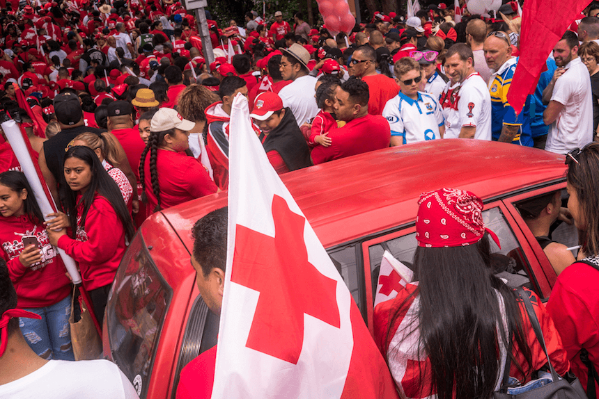 On the street outside the station – a game that broke agonisingly for Tonga, but a display of fandom the city will never forget