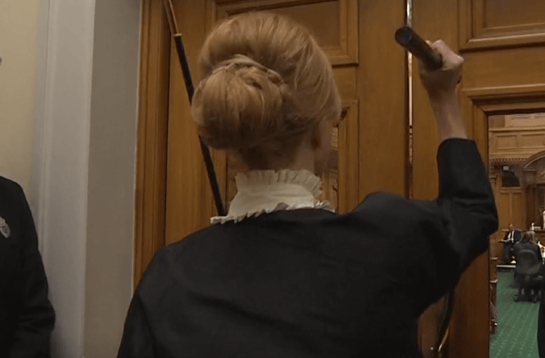 The “Usher of the Black Rod” is responsible for summoning MPs to the chamber for the throne speech. Henceforth, they will be referred to in these updates as “roddo”.
