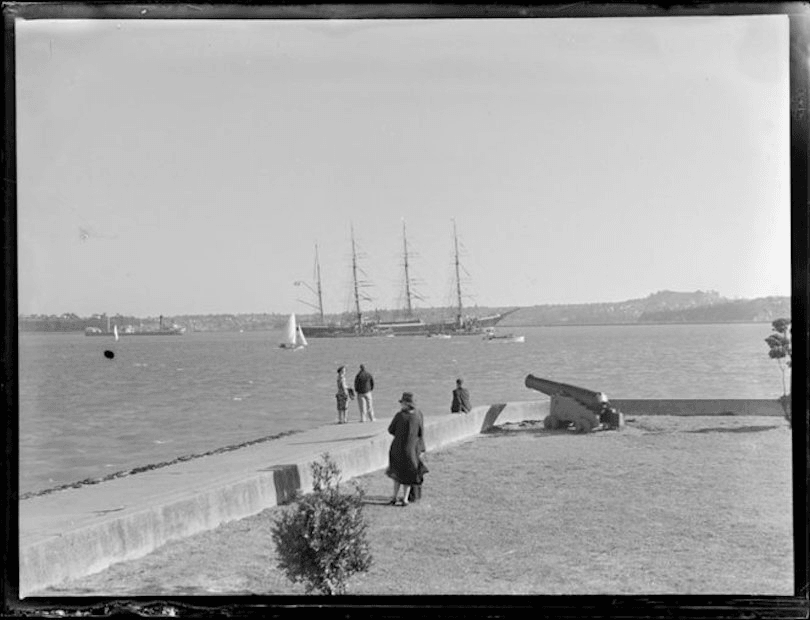 In the last summer before World War Two, the German naval vessel Kommodore Johnsen toured New Zealand. The ship’s crew of 45 were made very welcome. At New Plymouth they gave a New Year’s concert to an audience that included the town’s mayor and other local worthies. The evening ended with the sailors giving stiff-armed salutes and singing the Nazi Party anthem Horst Wessel, while locals stood respectfully.