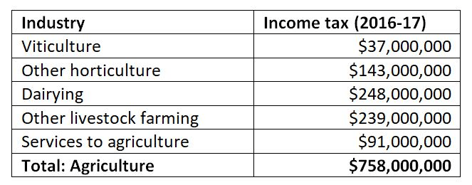 In 2016-17, the government collected $75.6 billion in tax revenue, while the agriculture sector paid $758 million in tax. This is a large sum, but not a large proportion of tax collected. It equates to the agricultural sector contributing 1% of tax revenue in the period. If we isolate dairying from the broader industry, its contribution is 0.33% – one-third of 1%.