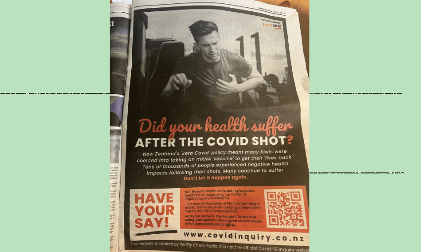 The bottom of the ad read “this website is created by Reality Check Radio. It is not the official Covid-19 Inquiry website.” According to Reality Check Radio, the people’s terms would be provided to both the Royal Commission and the government before the end of the consultation period.