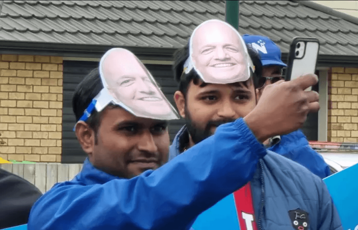 There is something absolutely terrifying about something that looks almost human and yet is very wrong. I read a pop-science book years ago that said it’s some sort of leftover from when neanderthals hunted us. I do not know if this is true. In any case, masks of human faces, on human bodies, is very, very scary, and there have been blue-clothed hordes of these around the streets recently, campaigning for Christopher Luxon.