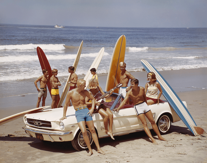That was on the East Coast. On the West, boys in big convertible cars with fins stopped in front of two-storeyed houses with immaculate lawns and a basketball hoop above the garage door to pick up girls with blonde hair flicked up at the ends. Life was one long beach with 16 hours of daily sunshine and enviable golden sand, and the sea rolled in with perfectly coiffed towering waves on the crest of which the bronzed boys cruised, to the admiration of the girls in their gingham bikinis on the beach. The Beach Boys were on the portable record player. There were tall chairs on which lifeguards sat, searching for sharks, rips, and the prettiest girls, with eyes that never stopped scanning. Sometimes a person with a tray held round their neck with a strap, sold popcorn or donuts and the hardest decision was Coca Cola, or Pepsi?