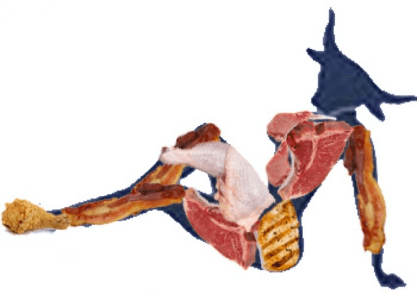 “She fluttered her salami eyelids and licked her lips with her enormous, grey, furry tongue. Her bacon skin was glistening, her breasts were juicy and her thighs were tender. She mooed, loudly, but it didn’t matter to me. She was the most beautiful meat-cow-woman I had ever seen.”