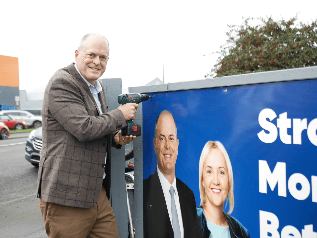 National Party leader Todd Muller says the party’s new hoardings “spell out what National will deliver when it wins the election and forms government: a strong team, more jobs and a better economy.”