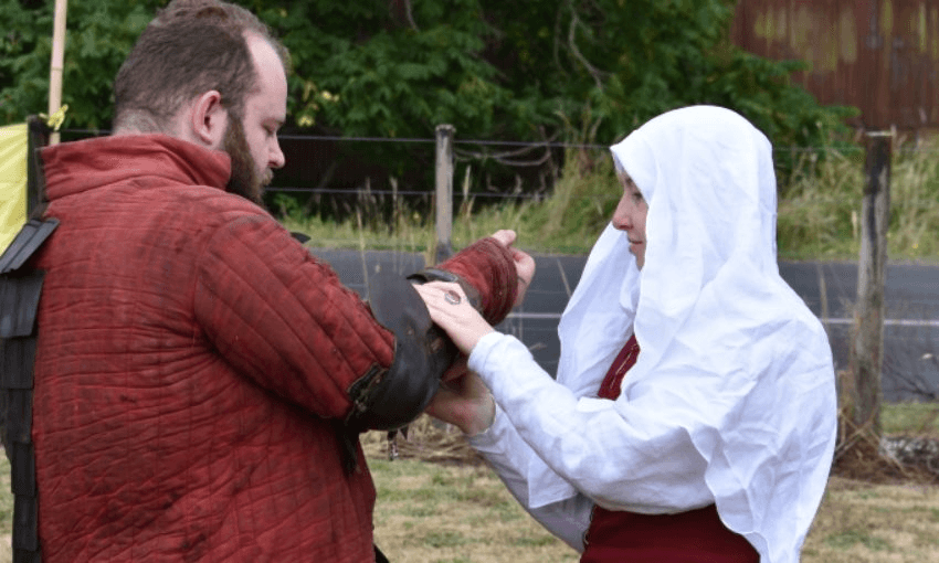 Making the armour came about in part because his interest coincided with the Lord of the Rings films being made, and Weta Workshops dominating the armour-production capacity of the country. Reenactment, and understanding history is also important to Justin and Sophie Stockbridge – herself a world champion fighter with a history degree, who runs the business side of their workshop All Fired Up Armouries. They make armour partly because they want gear that works in combat situations, but they also make it so they can understand why it works. The way it’s created is also analogous to how it would have been done in the Medieval era, but with slightly more modern tools. Justin gives the example of sandpaper – once upon a time those jobs would have been done with oil and sheep’s wool with sand grit attached.
