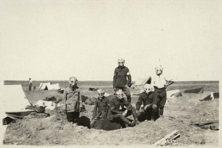 It took the British empire three battles to capture Gaza. A photo taken before the second assault shows New Zealanders trying on gas masks. It is captioned Gaza Beauty Show. The attackers fired 4,000 canisters of asphyxiating gas towards the city. No Gazan had a gas mask. Before the final assault the city was bombarded for four days by naval guns, artillery and planes. When they finally captured Gaza, the New Zealanders found it empty. Almost the entire population had fled the bombardment; the Ottomans had followed them.