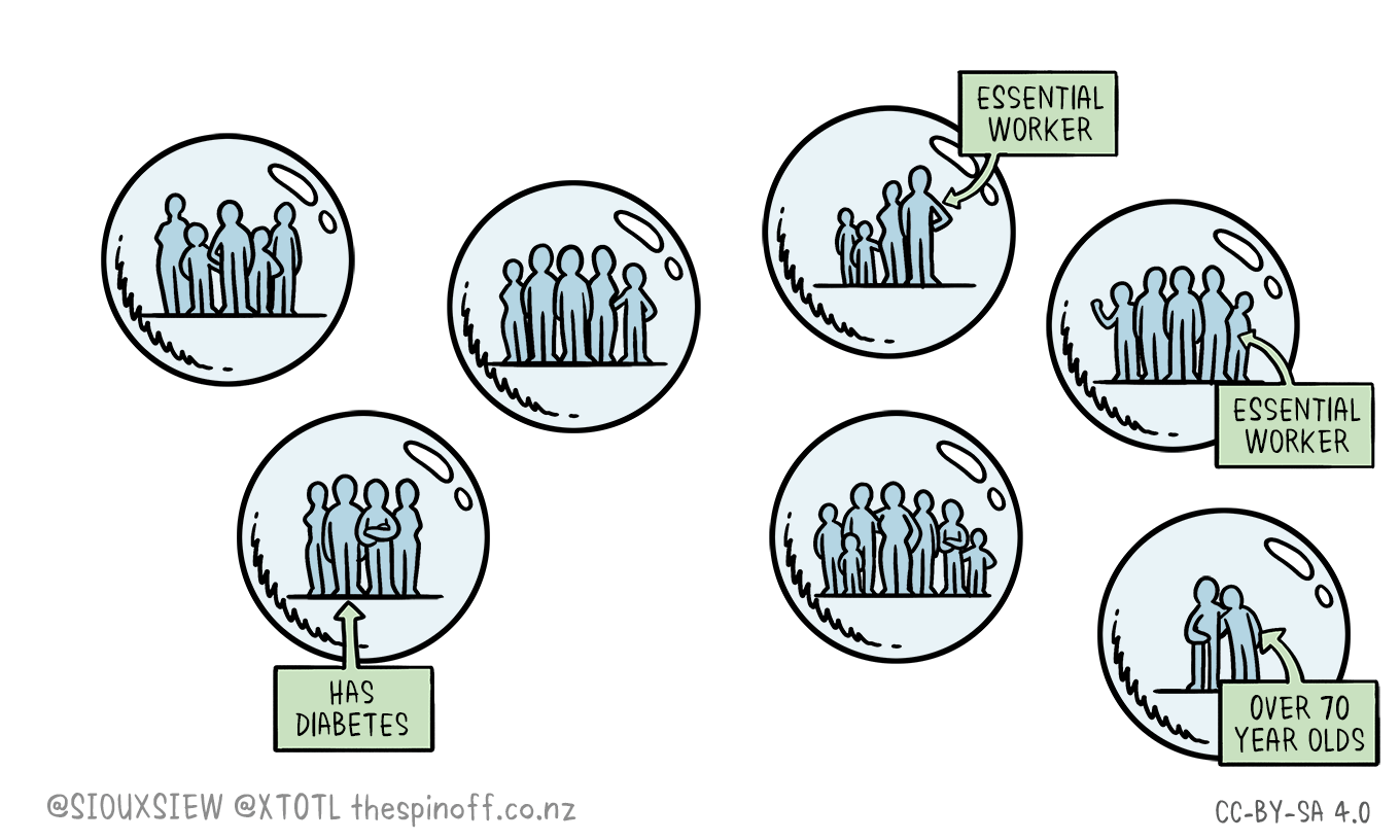 Spinoff cartoonist Toby Morris and I showed how easy it can be for the virus to spread through our bubbles if people engage in a spot of bubble-breaking. I’ve seen lots of pictures of this from the first day of alert level three. Hopefully this bubble-breaking was just a one-off but if it becomes the norm then we are in trouble. Because the more people don’t stick to the rules of alert level three, the more likely we are to see cases rise. And because of the incubation period of the virus we may not see that for a week or two – just as the point we are all starting to get excited by the prospect of potentially going in to alert level two. Wouldn’t be absolutely heart-breaking to have to go back to level four instead?