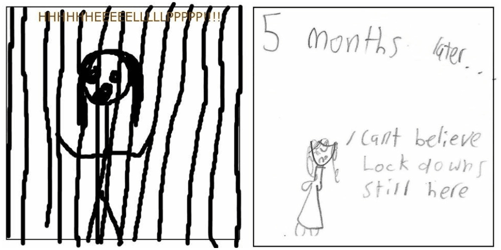 Then, lockdown got hard. Loneliness and boredom set in. Children found themselves sad, or frustrated, or angry. One girl drew herself in jail. “It’s like your whole world is a house,” she said.