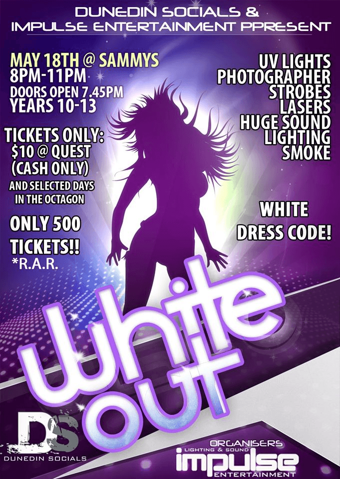 In 2012, Daniel Chew was a club photographer with connections throughout the Dunedin club scene. Realising that high schoolers were a largely untapped nightlife market, he founded The Nightclub Experience with a plan to create ticketed, alcohol-free parties where pre-teens and teens could party in safety. Chew wasn’t the only one with this idea; similar companies around the same time included Dunedin Socials, Blackout and 18UNDER. The latter was originally launched to help fundraise following the Christchurch earthquakes, only later becoming an events business aimed at teens.