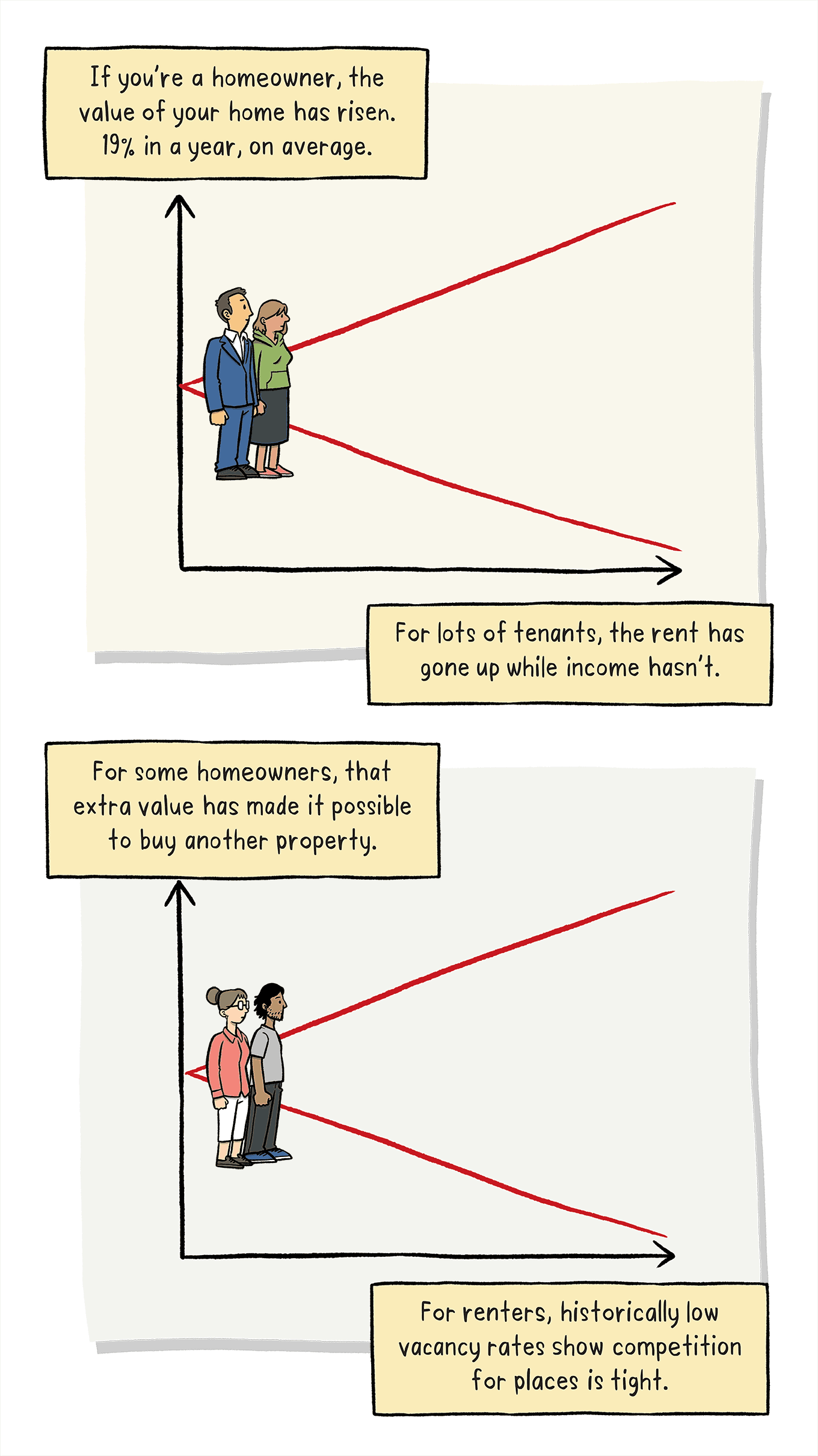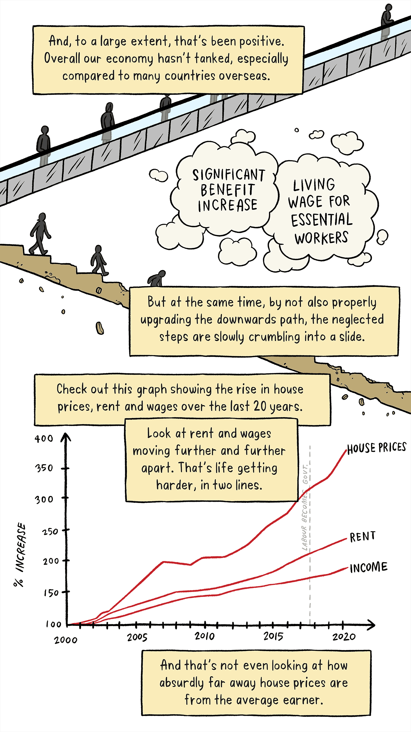 Rich and poor, young and old, renters and landlords: sometimes it feels like there are two parallel versions of our country existing side by side. In 2021, The Side Eye will explore this theme in a series called ‘Two New Zealands’. Whether it’s the wealth gap, generation gap, the rural vs urban contrast, the differences between how Māori and Pākehā are treated in the health, justice and education systems, or how differences in gender or sexuality affects people’s experiences and opportunity – there’s a lot to discuss.
