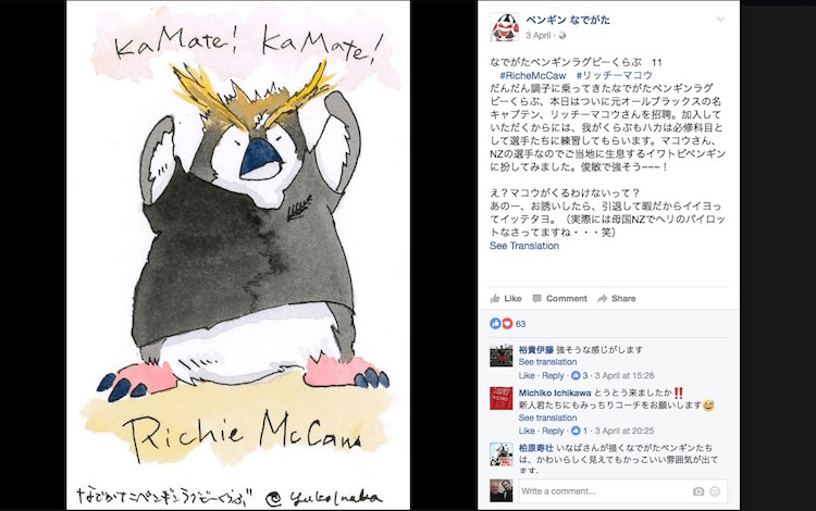 On the Nadegata Penguin Facebook page, I found the holy grail: Richie McCaw, as a rockhopper penguin, performing the haka.