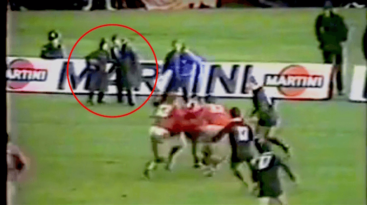 The All Blacks won 15-8, on their way to a 4-0 series whitewash. The match is probably best remembered for Stu Wilson claiming the New Zealand record for most test tries. In the grainy footage you can see Tony and I loving being as close as we could get to the action. Looking like two bedraggled ewoks, we had the best seat in the house as one of our heroes burst through to score.