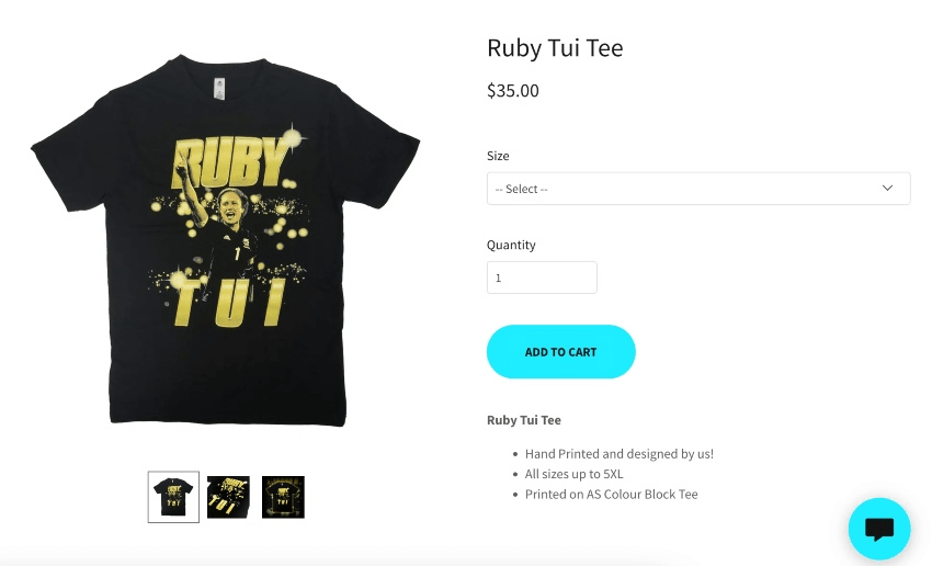 This is the only t-shirt publicly available to purchase. It’s designed and hand printed by the lovely Sāmoan family business Positive Tees in Avondale. There’s no relation to Tui that I know of, making this the only t-shirt designed and printed simply for fans to purchase. Again, there are no (zero, zilch) non-replica-playing-jersey merch tees available through New Zealand Rugby.