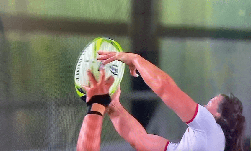 There are a thousand moments in every sports match that decide the final result. Every missed tackle or kick or try could be the thing that changes the outcome. But when it all comes down to it, the final play is the final play. And on Saturday night, the final play was Ngan-Woo’s hand, coming up like the hand of God to gift victory to the Black Ferns. I love The Hand, even as a photo of a TV because Spark Sport doesn’t allow screenshots.