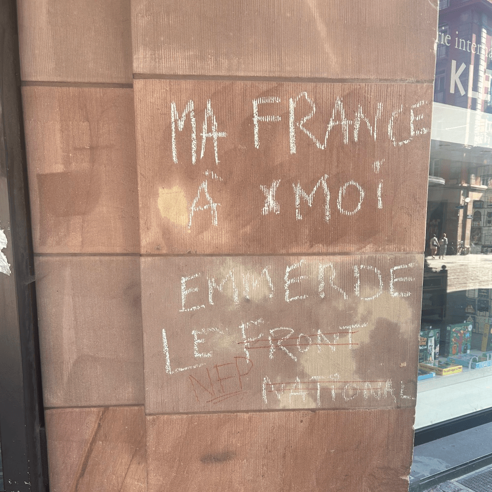 I ended up back in France for the Olympics, in the immediate aftermath of the stunning loss by the RN in the snap elections called by president Emmanuel Macron (although, whether this simply temporarily staves things off for a couple of years is another question). We arrived in France via the East, and saw significant amounts of anti-RN graffiti and pro-New Popular Front throughout the towns and cities in Alsace and Lorraine. I thought I might combine two of my favourite things: the Olympics and Paris.