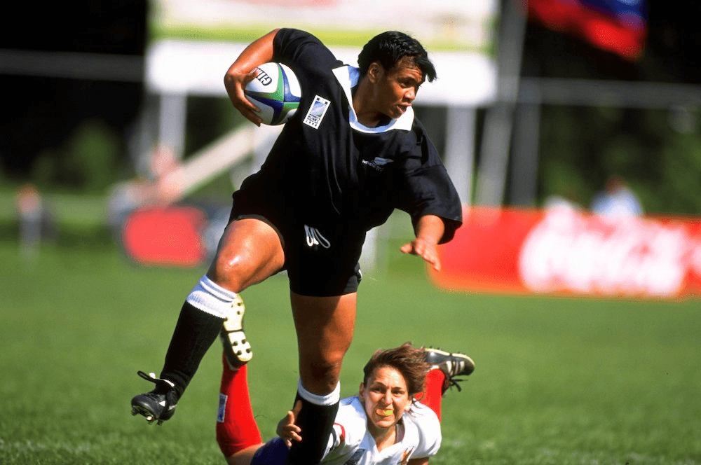 Her try-scoring average was an unbelievable 2.69 tries every test she played. She still sits on top of the Black Ferns try leaderboard and holds the single-game record – nine against France back in 1996. She scored four in the World Cup final against the USA in 1998. My role in that team as a loose-running number 6 was often “just pass the bloody ball to Vanessa”.