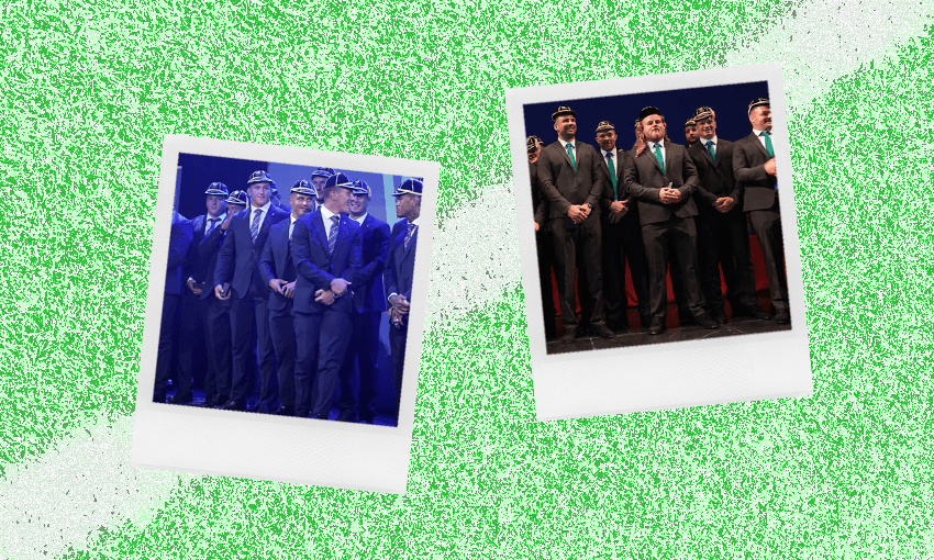 New Zealanders know about sunburn and we send our finest away with adequate protections. Still, you can only lead your horse to water. The All Blacks seem to have a penchant for jewellery. All are proudly displaying pounamu, and most a chunky watch, too. That’s posh.