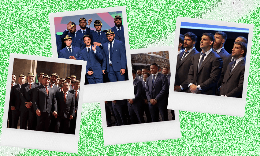 There is nothing quite as fun as dressing to match your friends, especially if you have 32 friends who are probably contractually obliged to do it. For sports teams, it’s usually a simple fit – shorts and a short-sleeved top – but on special occasions, like a Rugby World Cup welcome ceremony, the suits come out. Some look like they’re straight off the rack and others look like a tailor got to express their purest artistic vision.