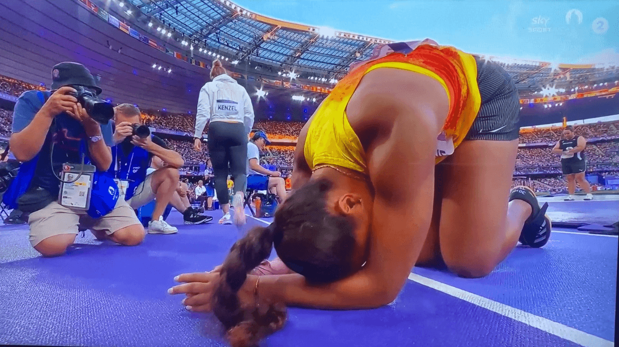 All the New Zealand viewers at home were confused. It looked so much further than that, and even landing there it surely was further than 19.58m? The NZ Olympics Instagram post celebrating Wesche’s silver medal moments later was flooded with calls for a remeasure and mild conspiracy theories about the coverage, the lack of another replay and the man with the measuring tape.