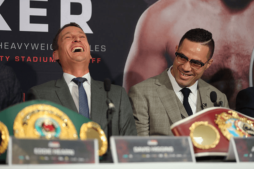 “I don’t know about all that,” interjected Joshua’s promoter Eddie Hearn, “But if your leg doesn’t stop shaking I’ll have to move.”