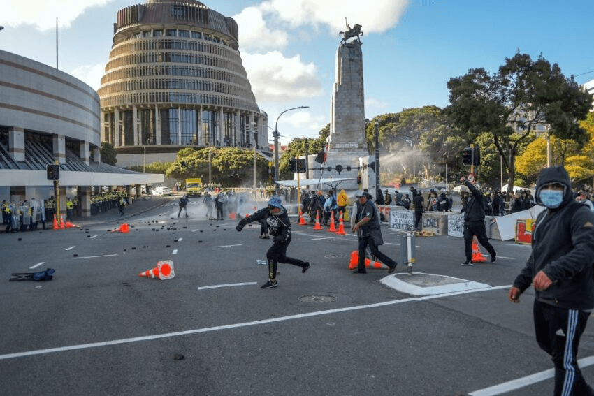 Probably I was wrong to say at the outset that yesterday was the end. The most dangerous ringleaders are emboldened, even if most of them had slipped out of sight as the people they had provoked to violence chucked makeshift missiles at police. These people could not give less of a shit about mandates or face masks; they’re more interested in declaring Covid a hoax, claiming trafficked children are locked by paedophile politicians beneath the Beehive and plotting an overthrow of the entire system of government, with “Nuremberg 2.0” trials and a field of executions. And they’re watching their mailing lists and Facebook groups grow.