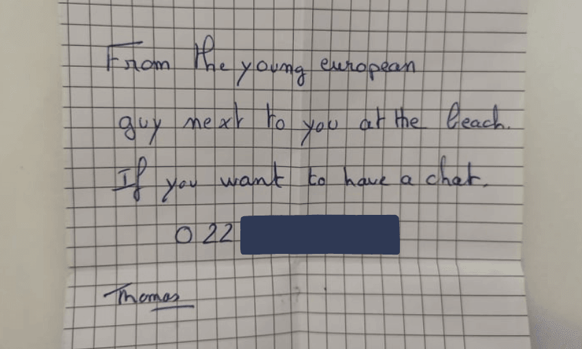 The only beach-goer that raised our eyebrows was a younger man sunbathing next to us. He stared a bit, and when we left the beach we discovered he’d tucked a note under the windscreen wiper of my car. My friend and I laughed, but on reflection it was one of the more respectful ways we’ve been approached. No harassment, no intimidation, no coercion, just a name, a number and an invitation to “chat” (though he didn’t specify which one of us he was interested in… suss). And if you’re reading this, Thomas, maybe don’t stare at women in public, OK?
