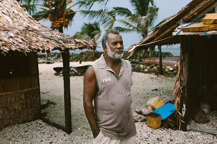 Timothy was born on Walande Island 53 years ago, has lived there every year since, and, if it were up to him, he’d die there. The fact that his is the only family left is less due to force of will and more sheer luck that his parents unwittingly built their first home on the safest portion of the island. Timothy watched as families on the shore fled their homes, followed one by one as each house washed away until finally his last neighbours departed just a few years ago. He’s not alone, though. Timothy lives with his daughter-in-law and her four young children. The children attend school on the mainland and take their small canoe across every morning, while Timothy travels over to tend to his crops (it’s impossible to keep a garden on the island with all the salt water that runs through it every high tide).
