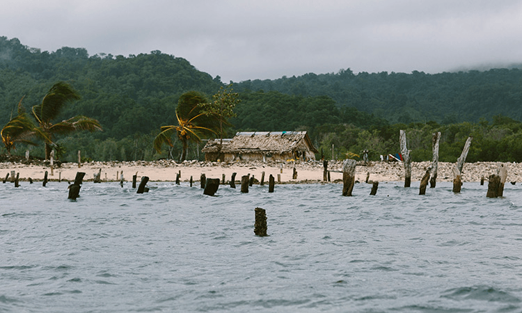 The skipper navigated our banana boat through wooden posts that shot out of the ocean like tombstones. Beyond them, on an island no wider than 50 metres, stood a lone house. The last home standing on the remains of a thriving village.