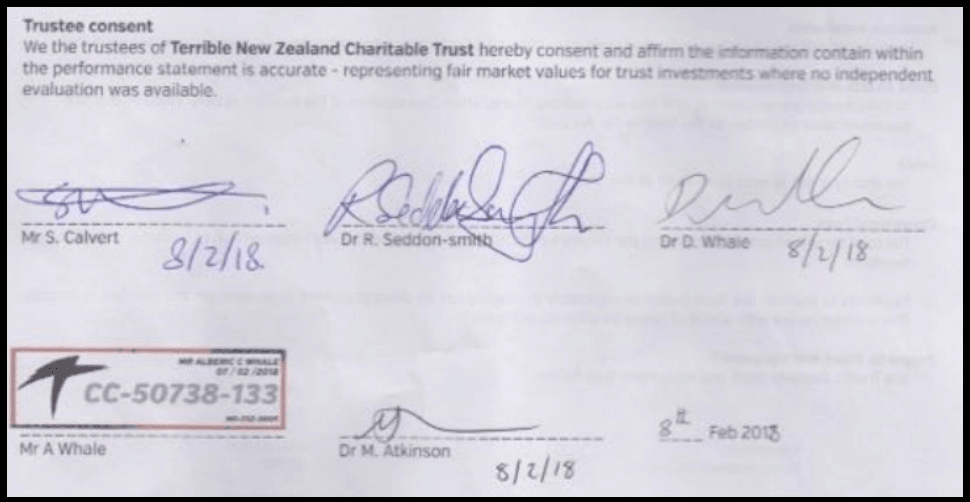 As I talked to Seddon-Smith, I wondered what his role was in all this. An enthusiastic helper or a core part of Team Terrible? We do know, at least, that he is a trustee of the Terrible New Zealand Charitable Trust: