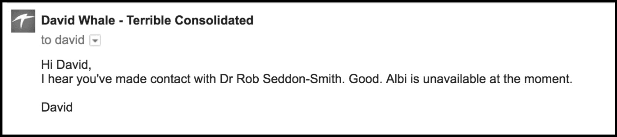 In frustration and desperation, I wrote back seeking some clarity from David Whale. I wanted clarity about something. Anything. I also asked again to speak to his son. That request was ignored. For full transparency, our emails can be read in full here. Towards the end of our email chain, David Whale simply opened with: “As AC Clark said ‘Any sufficiently advanced technology is indistinguishable from magic’.”