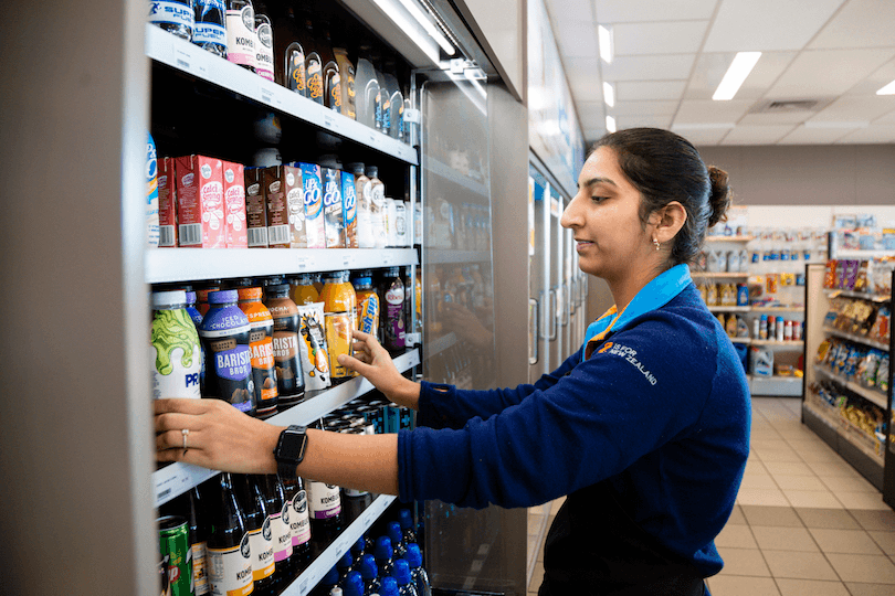 Aman Sidhu and Simr Kaur are behind the counter at Z Energy in Dinsdale, Hamilton, on this winter Wednesday morning. The forecourt is busy with cars – everyone pumping gas – and there is a small queue inside as customers pay for petrol, pies and coffee.
