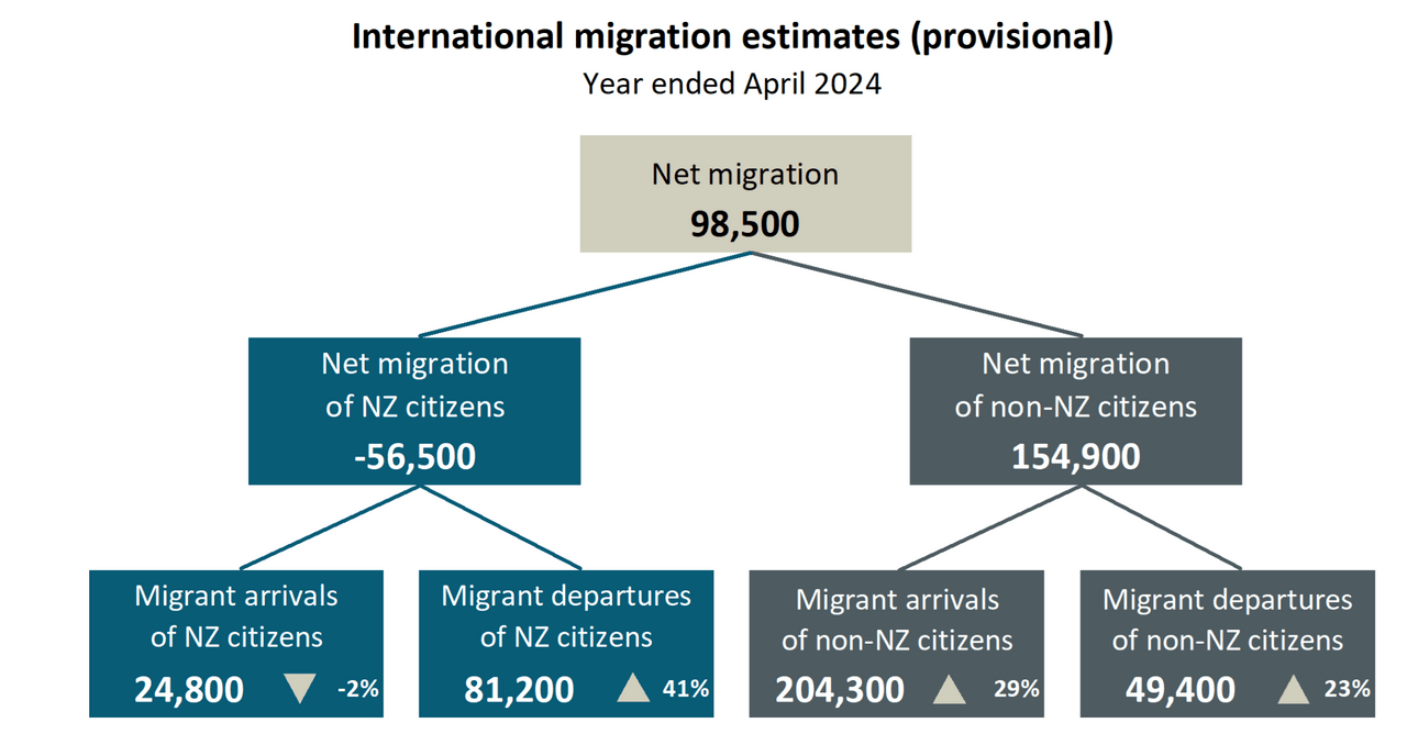 Back in 2020, The Spinoff produced a six-part podcast series called Coming Home. It was focused on the influx of New Zealanders returning to Aotearoa during the Covid-19 pandemic, and it had a pretty optimistic tone. It’s still worth a listen if you missed it, but that podcast could not be made today. Because new figures from Stats NZ show people are leaving the country in record numbers. Eva Corlett at The Guardian has the key details, reporting that the 130,600 migrant departures was the highest on record for an annual period (though net migration showed a gain of 98,500, up from 85,800 a year ago). However, of those leaving the country long term, about 81,200 were New Zealand citizens – a 41% increase on the previous year. “With 24,800 New Zealand citizens arriving during the period, that put the net migration loss of citizens at 56,500 – exceeding the previous record of 44,400 in 2012,” Corlett wrote.
