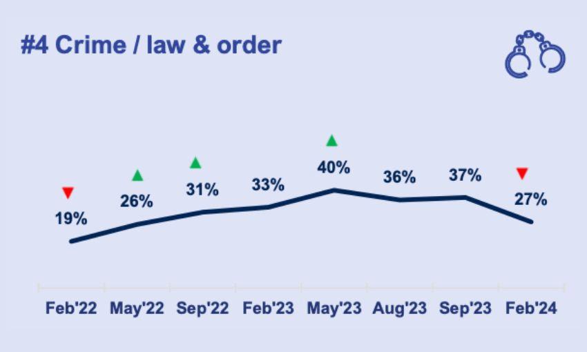 It was political strategist Lee Atwater who said, “Perception is reality”. Atwater worked as a Republican political operative with Bush and Reagan. The phrase is particularly cynical in a political context, and the mildest thing you might read about Atwater is that “he displayed more than a tinge of amorality.” He is not the topic of discussion today, but his words came to mind yesterday when looking over the latest Ipsos Issues Monitor results and a couple of crime and justice stories yesterday. The Ipsos results show crime/law & order has “significantly fallen in prominence as an issue” to be the fourth highest issue New Zealanders are concerned about at 27%, its lowest level since May 2022. It’s been number two since May 2023, peaking at 40%, which was its fourth consecutive high since the Ipsos Monitor began in 2018. It was sitting at 16% in February 2021. Toby Manhire zeroed in on the Ipsos survey results in June last year, and this is no rocket science from me, but you can view it as a pretty good precursor to what played out at the election.