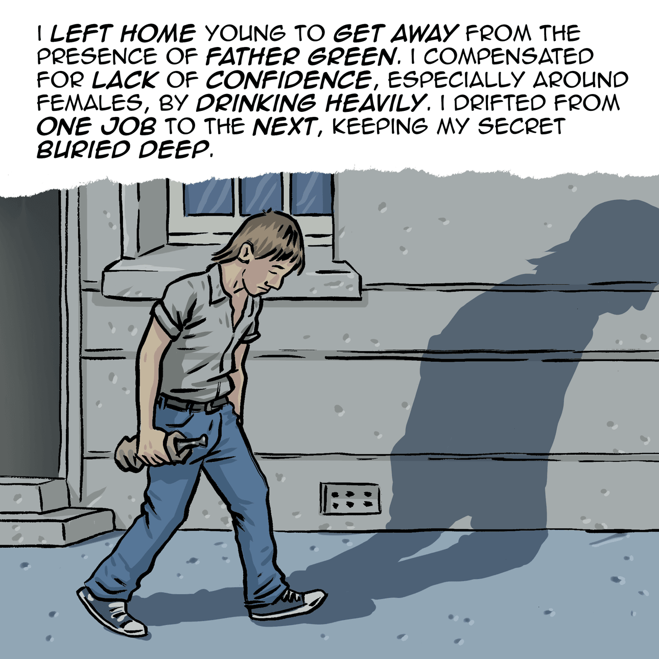 I probably left home at too young an age, to get away from the presence of Father Green. I compensated for lack of confidence, especially around females, by drinking heavily. I lacked stability, drifting from one job to the next, never staying too long in one place and never being able to trust or form a close relationship with anyone, thinking there was something wrong with me because of what had occurred. Keeping my unspeakable secret buried deep.
