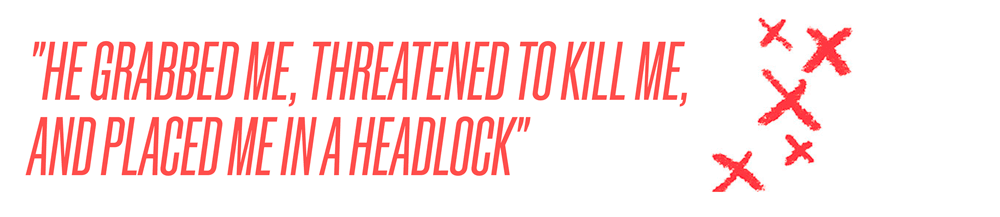 “He started headbutting me,” Carr remembers. “He grabbed me, threatened to kill me, and placed me in a headlock. [He] then threw me off the balcony we were standing on. He chased after me, threw me headfirst into the ground, before throwing me down a bank, where I was knocked unconscious… [He] left me lying there covered in blood. I woke up around lunchtime, feeling groggy. I had been there all morning… I was covered in bruises and had lumps all over my face and head. I still have multiple scars across the back of my head.”