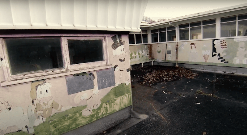 There’s a video on YouTube of a self-proclaimed “urban explorer” picking through the derelict remains of the Kimberley Centre on the outskirts of Levin. Gloved hands open rusted doors to reveal abandoned rooms full of destroyed furniture, jammed typewriters, soft toys spilling their stuffing across the floor. Outside, a faded mural depicts beloved cartoon characters from days gone by: Wallace Footrot and Dog, The Flintones family and a few of the Muppets.