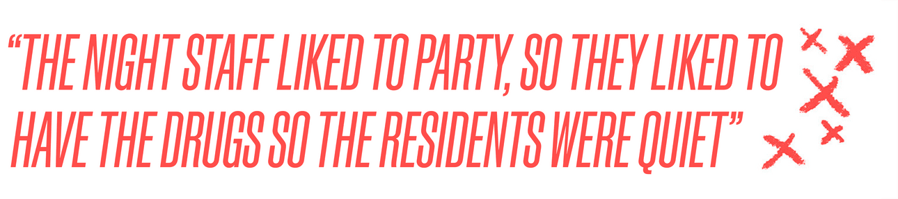 In Irene’s file, “bruising on her thigh consistent with trying to vacate her restraint chair” is just one in a litany of injuries reported at Kimberley. There’s bruises, cuts, scratches, a tear to an eyelid, a head injury. “One I do remember vividly, and that was a large gash that took a long time to heal,” recalled Margaret. “It required five sutures underneath her eye and she was not seen by a doctor for that for a couple of days after it happened, and then it was written in her notes ‘patient uncooperative’. They didn’t even use her name.”