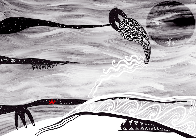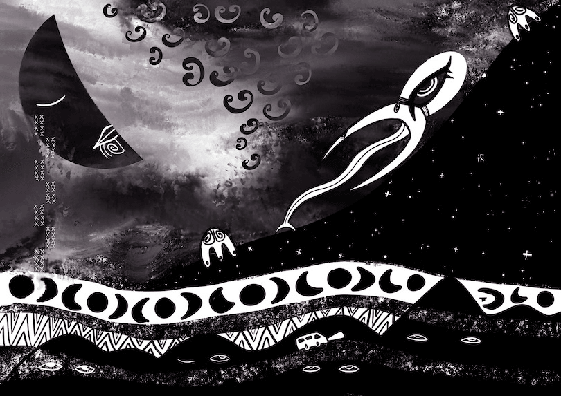 My brother left on a Tangaroa moon. It was Hereturikōkā, the month when the knees become scorched from sitting too close to the flames. The last photo he sent me showed a fire burning like a jagged hole in the fabric of the universe, like a portal, like a glistening shard inside the darkness of the pupil.