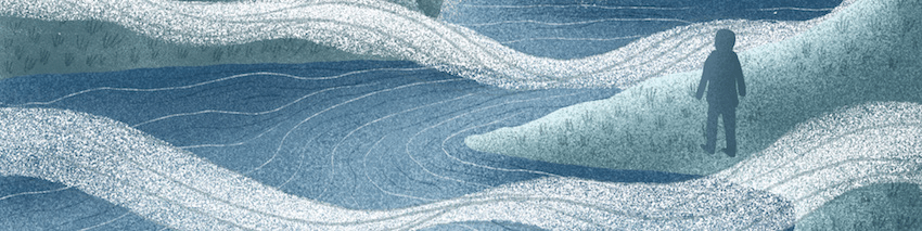 My foot touches a road cone and, in a moment, this internal landscape is lost and I’m forced to concentrate on my walk around the courtyard. More have joined the caravan of walkers, and I veer away, cut corners, moving like a yacht looking for clear air. I fall in behind another walker going at my pace. She walks with the bounce of someone decades younger than me, her body compact and athletic, and I feel a flash of envy at her fluid beauty. For a time I’m swept along behind her before she moves away to avoid a couple walking with a child. I pass a man I see most days. He is large and round, like a bear, and he leans forward as he walks, swinging his heavy arms, and thrusting long strides ahead. Despite his bulk he glides, velour track pants flapping, over the paving stones, with animal-like smoothness. I hear the mask-muffled sound of two women talking, but the other walkers move in silence.