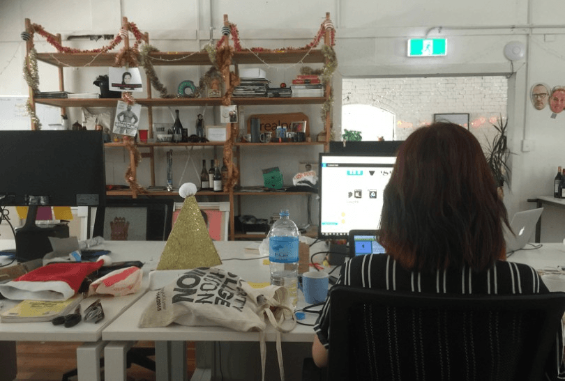 That afternoon I waited impatiently for Jihee to leave so I could start setting up the office for the big reveal the next morning. Everybody loves a big reveal, right? Workmates and fellow Christmas enthusiasts Sam, Kerryanne and Alex offered to help and I gladly accepted, remembering Jade’s advice to always decorate together. We were at the office till 11 o’clock putting up lights, hanging tinsel, blacking out the windows, making a giant advent calendar on the wall (just because), and drinking tequila sunrises. It was incredible.