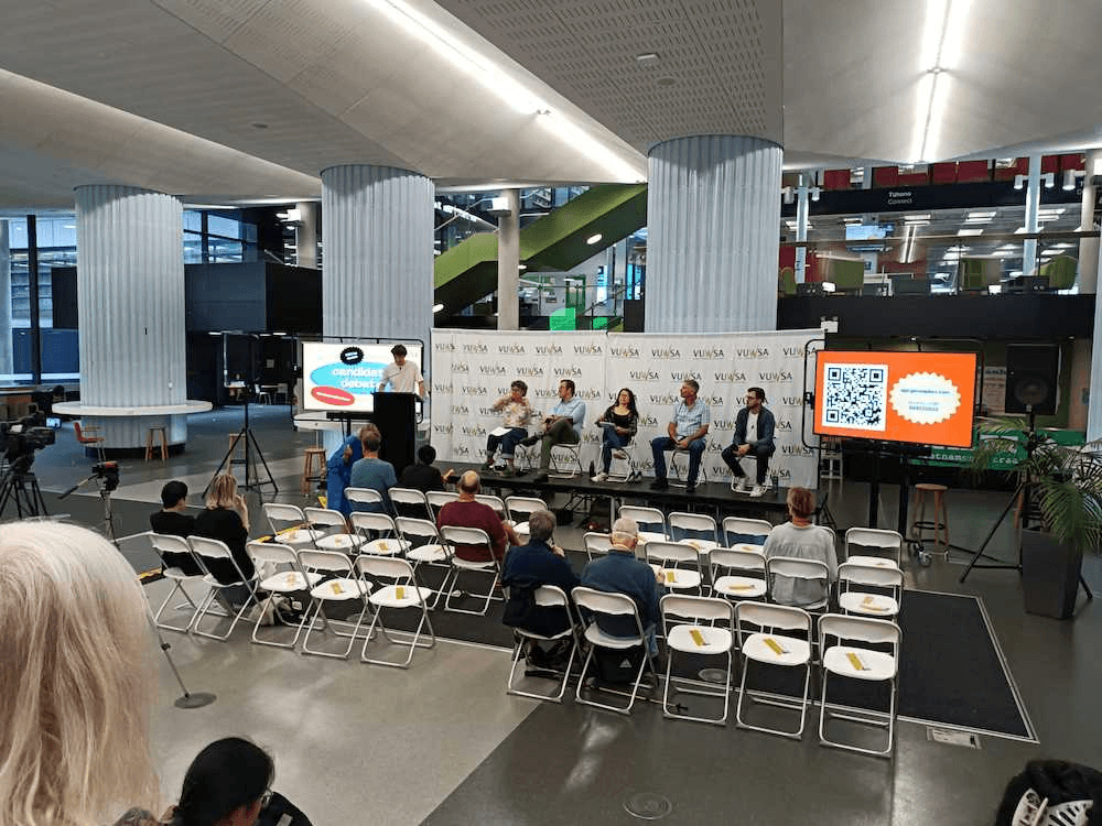 The Victoria University of Wellington Students’ Association, who hosted the debate, did not invite candidate Peter Wakeman, after reports of poor behaviour in previous events. He resorted to walking big circles around the perimeter of the stage while staring in a vaguely menacingly manner. The seventh candidate, Zan Rai Gyaw, was absent.