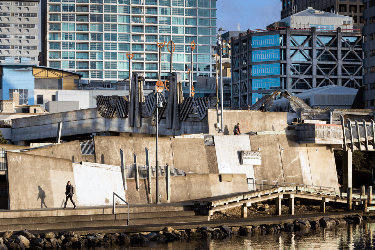 Lots of people think Ian Athfield designed the City to Sea Bridge as an extension of his firm’s work in Civic Square. Athfield and Rewi were friends who worked together on Capital Discovery Place – the short-lived children’s museum under the steps on Civic Square – and an unsuccessful proposal for Te Papa with Canadian-American architect Frank Gehry, the designer of the Guggenheim Bilbao. But the City to Sea Bridge is the creation of Rewi and architect John Gray – who’s currently engaged in the campaign to save it.