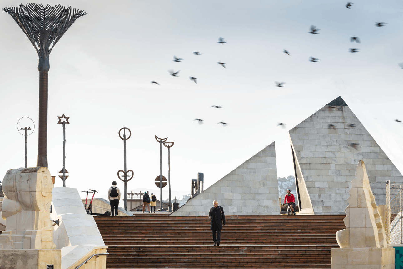 Most bridges are marvels of sleek engineering, but the City to Sea Bridge takes an almost contrarian approach.