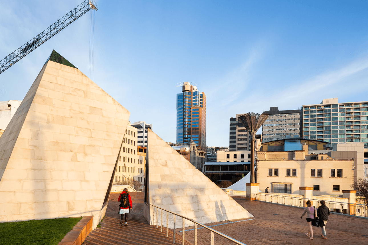 I can’t think of another civic structure like it, in New Zealand or anywhere else. We mustn’t forget that granting a Māori architect an important public commission then was a radical step, one that represented a commitment to a different kind of future. The bridge speaks of a unique time in Wellington’s history, one that was brimming over with a new self-confidence (not coincidentally, the Absolutely Positively Wellington campaign was launched in 1991). “The mayors during that period, they were salespeople,” says urban designer Stuart Niven, who joins my video call with John Gray. “They knew all about pitches and how to position a city. There were wonderful things going on, and the more people saw happening, the more they got excited. And that excitement infused the city in all sorts of ways.”