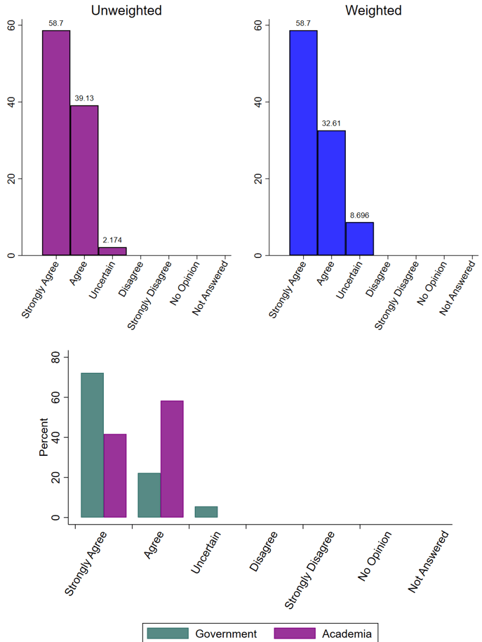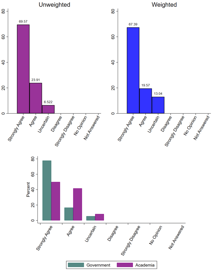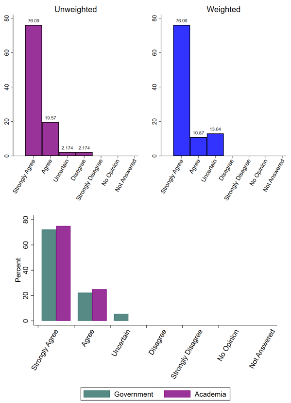 Of the economists who responded, 96% agreed or strongly agreed. One person was uncertain, and one disagreed.